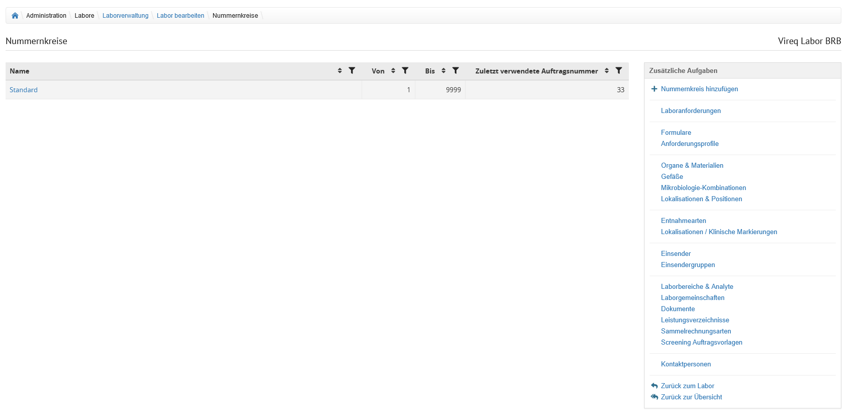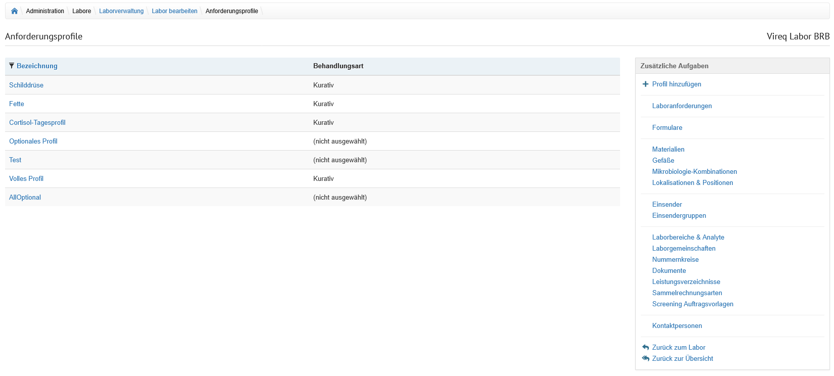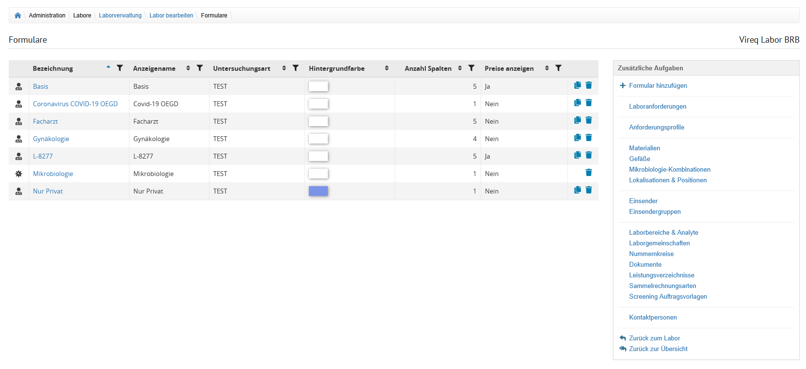 Auf der Übersicht der Laborverwaltung werden alle im System hinterlegten Labore angezeigt.