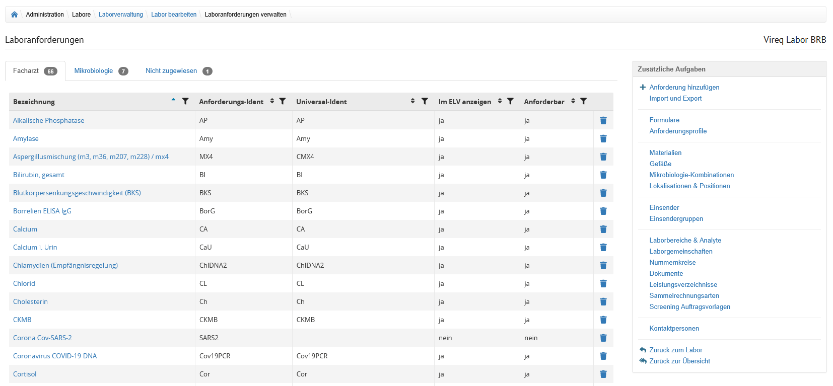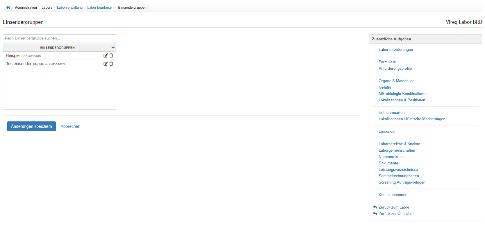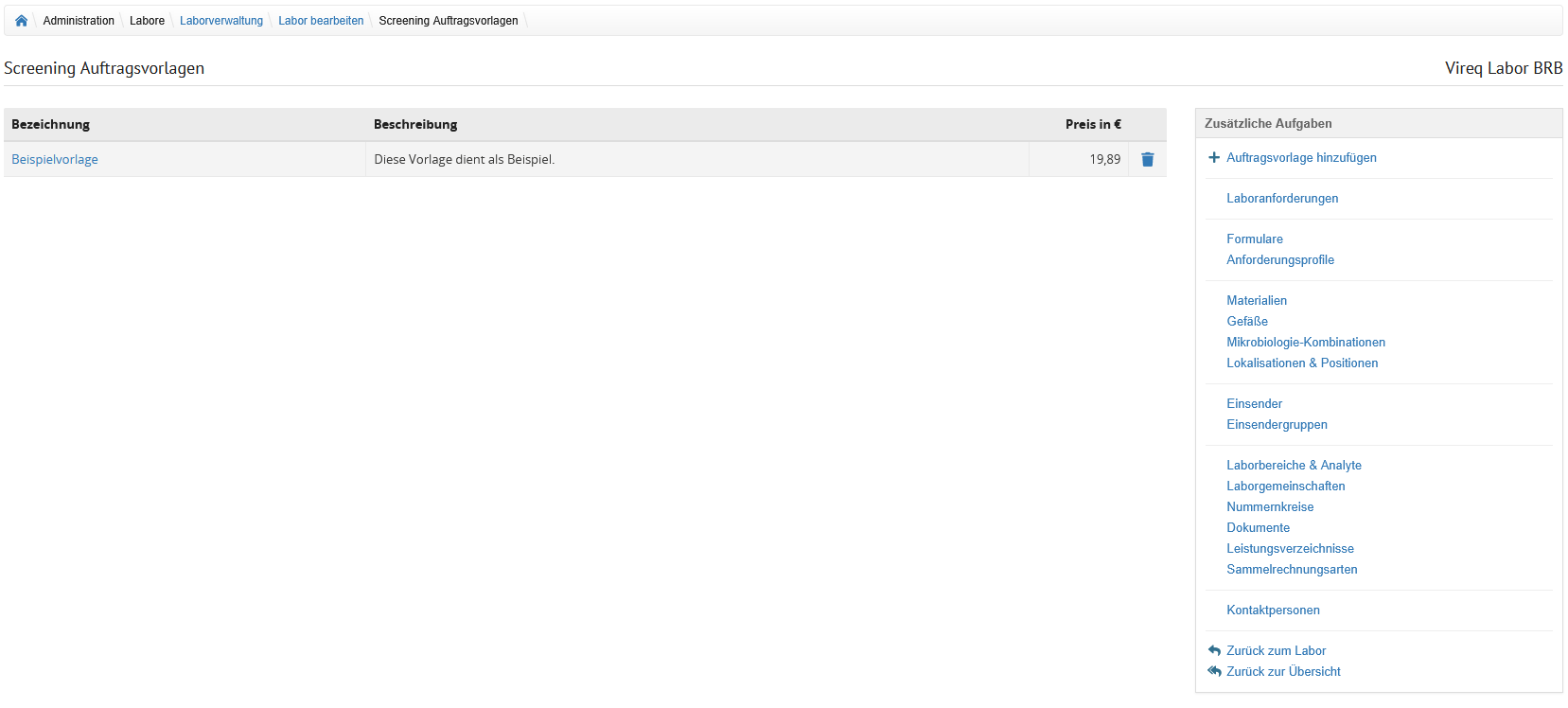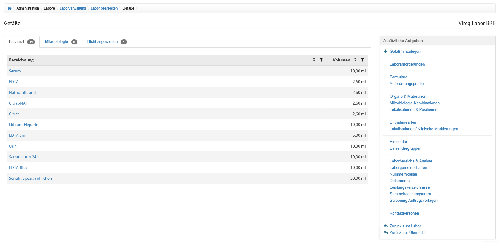 Auf der Übersicht der Laborverwaltung werden alle im System hinterlegten Labore angezeigt.