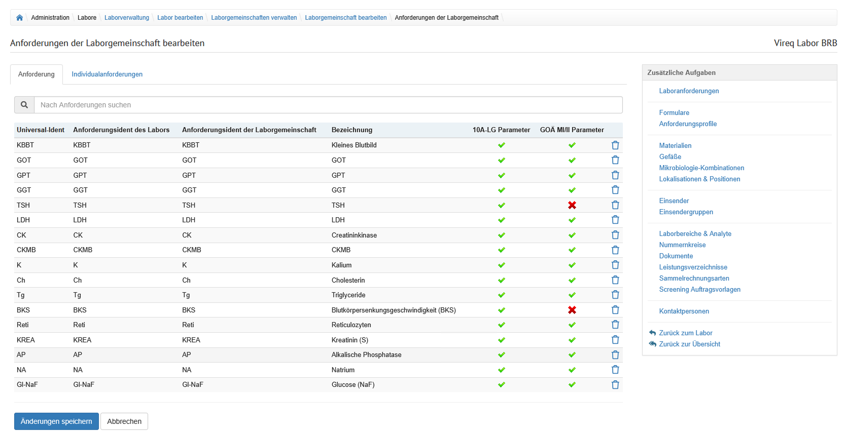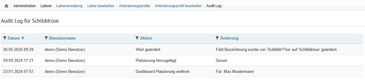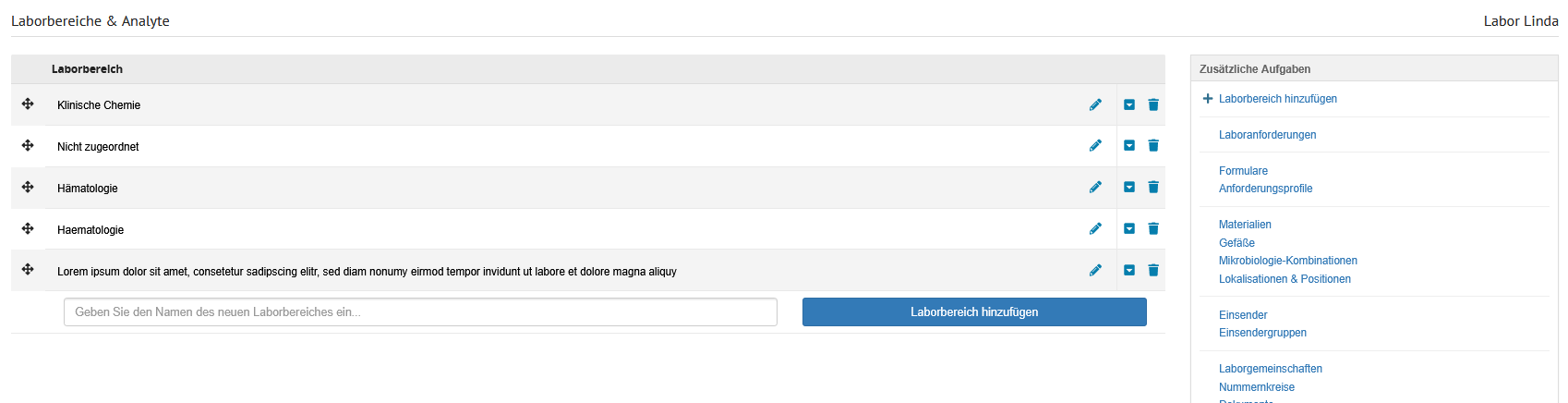 Ein Klick auf den Namen führt auf die Seite zum Labor bearbeiten. |