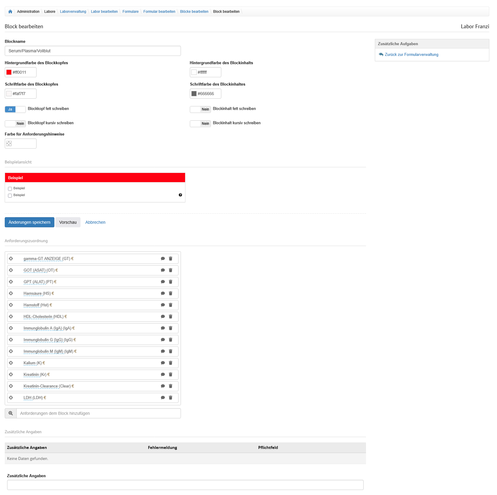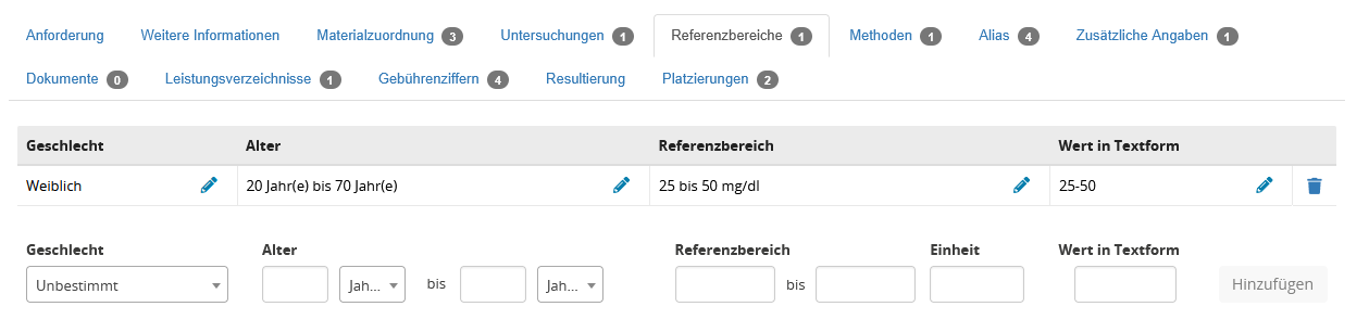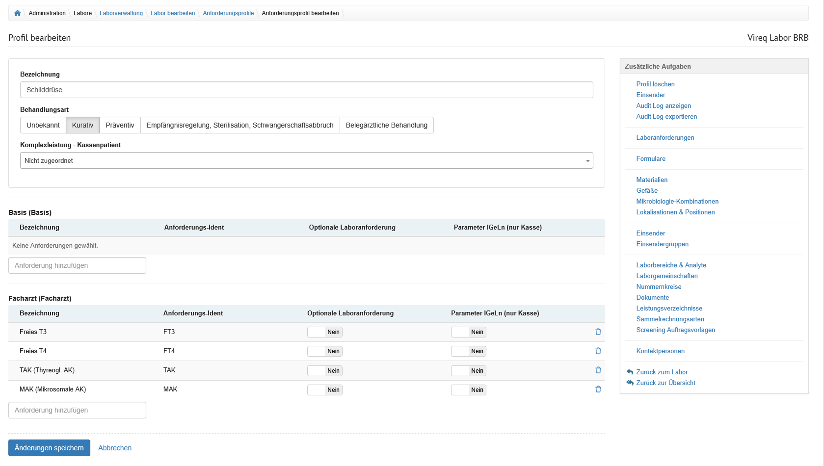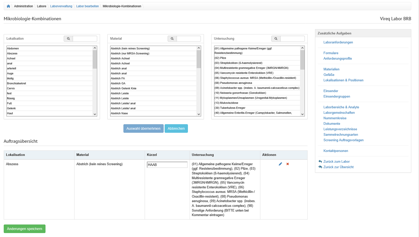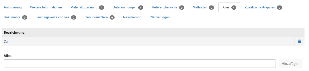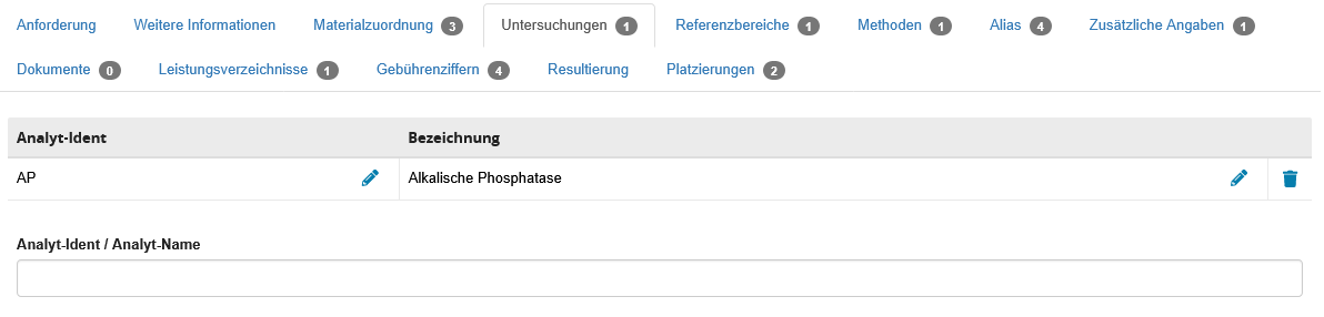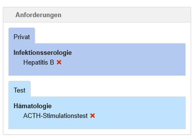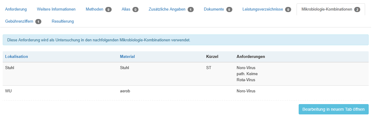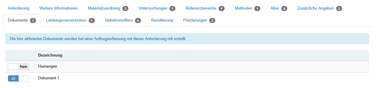 Der Bereich wird durch Tabreiter in die Formulare unterteilt, welche am Labor hinterlegt wurden.