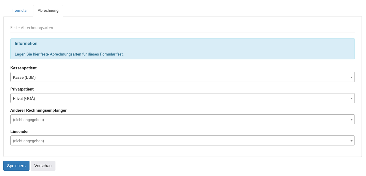 Weitere Optionen befinden sich unter dem Tabreiter "Abrechnungsarten". |
