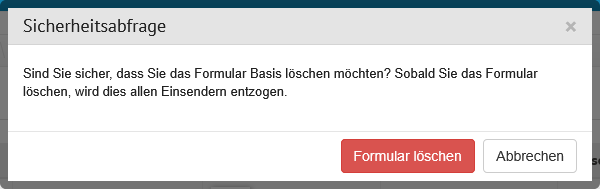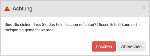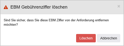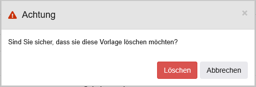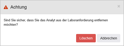 | Löschen | Bei Klick auf diesen Button öffnet sich zunächst ein Modal, in welchem das Löschen der Vorlage bestätigt wird. Bei erneutem Klick auf "Löschen" wird die Vorlage gelöscht, und das System navigiert zur Übersicht aller Screening Auftragsvorlagen des Labors. ![]() |