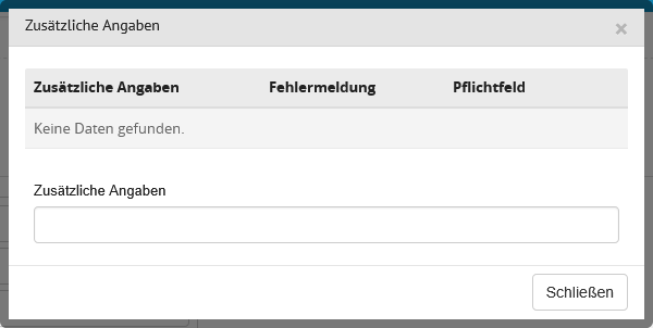 | Zusätzliche Angaben fokussieren | Auswahlschalter | Wird der Auswahlschalter hier auf "Ja" gesetzt, werden alle zusätzlichen Angaben bei der Auftragserfassung zentral geöffnet. Dies bedeutet, das bei Auswahl einer Anforderung mit einer zusätzlichen Angabe alle Eingabefelder des Bereichs "Zusätzliche Angaben" in einem Modal ausgegeben werden. Sie können auch dort erfasst werden. |