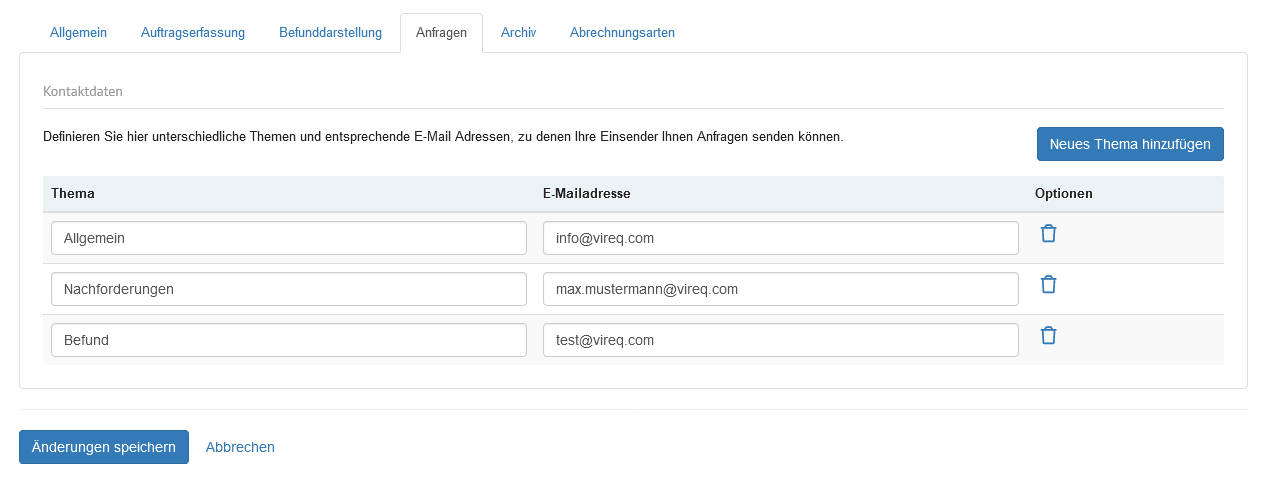 | Hier wird die hinterlegte E-Mail Adresse des Labors angezeigt. | |