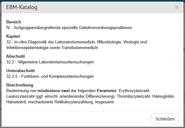 | BSNR | Eingabefeld | In diesem Feld steht die Betriebsstättennummer des Labor-Standorts. Diese neustellige Nummer besteht aus der siebenstelligen KV-Abrechnungsnummer und zwei ergänzenden Nullen. |