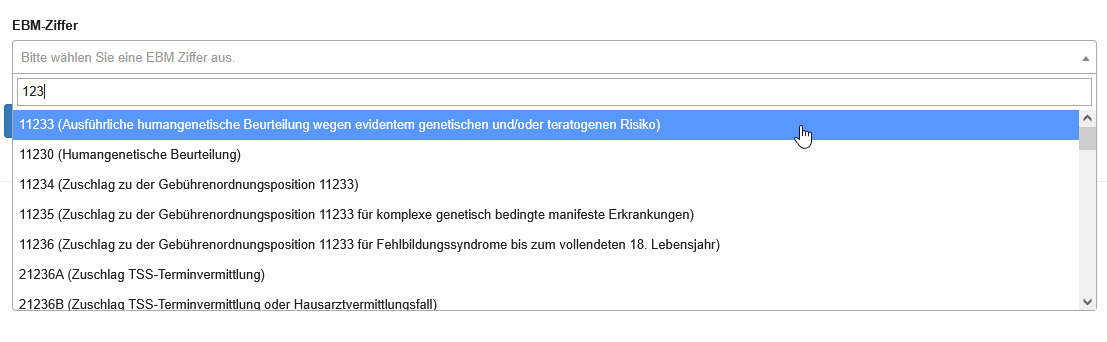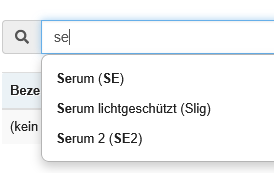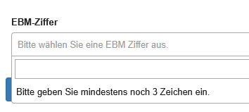 | Anforderung | Suchfeld | Nach Eingabe von mindestens 2 Ziffern öffnet sich die Ergebnisliste.