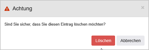 | Aktionsspalte | Hier kann mit Klick auf das Mülleimer-Icon Vor der Löschung erfolgt eine Abfrage zur Bestätigung. ![]() |