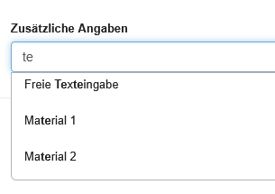 | Zusätzliche Materialien zulassen | Auswahlschalter | Wird der Auswahlschalter hier auf "Ja" gesetzt, dürfen im Kontext einer Nachforderung weitere Materialen hinzugefügt werden. |