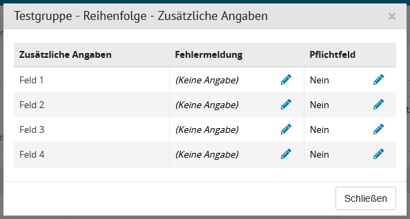 Die möglichen Pflichtfelder sind: