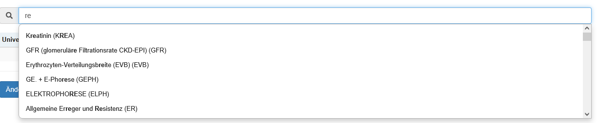 | Standard Laborbereich | Dropdown | In diesem Dropdown kann zwischen den verfügbaren Laborbereichen gewählt werden. Neu angelegte Untersuchungen (Analyte) werden automatisch dem Standard Laborbereich zugewiesen. Das Bearbeiten und Anlegen von Laborbereichen wird hier beschrieben. |