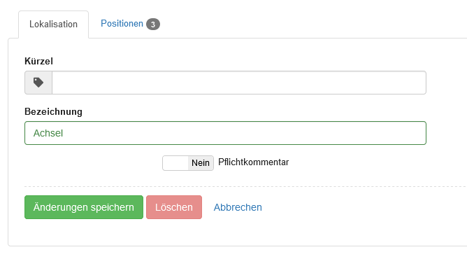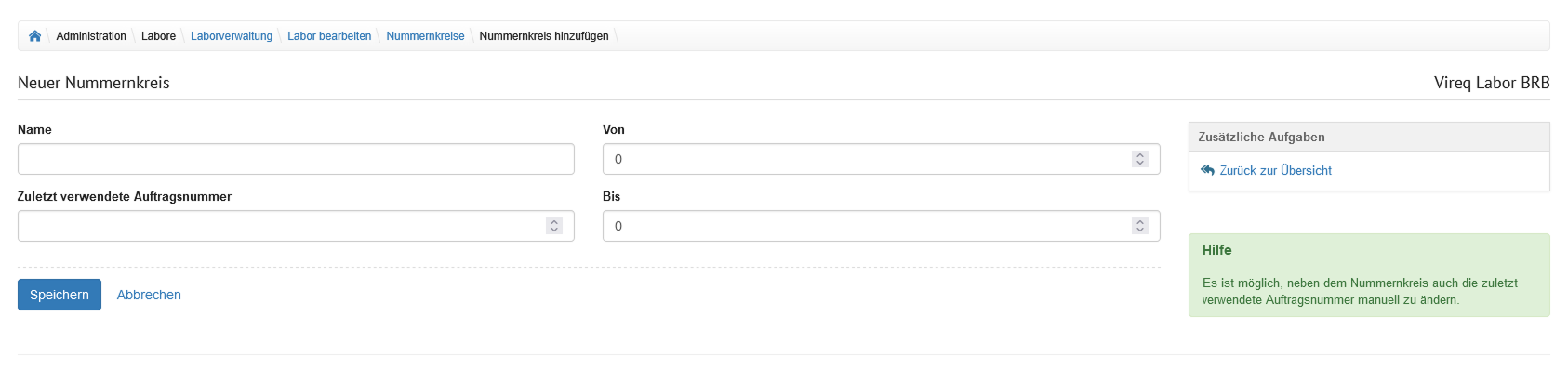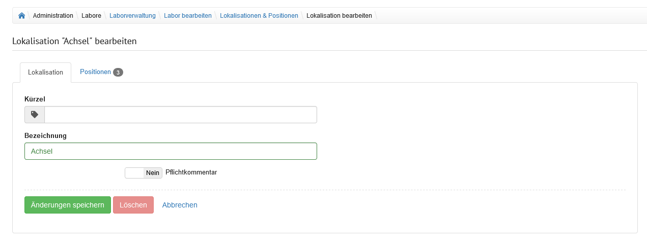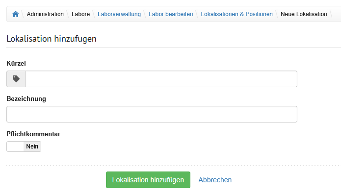 | Ort | Eingabefeld | In diesem Feld wird der Ort angegeben, in welchem sich das Labor befindet. |