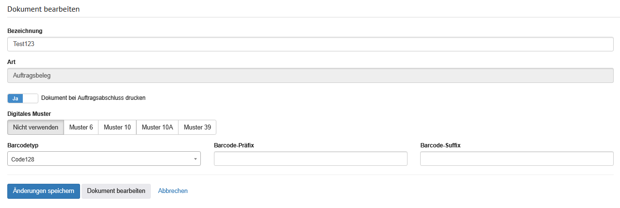| Druck vor dem Abschluss zulassen | Auswahlschalter | Wird der Auswahlschalter hier auf "Ja" gesetzt, können bereits vor dem Auftragsabschluss die Auftragsdokumente gedruckt werden. |