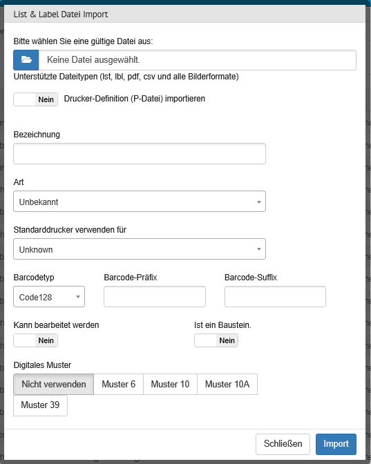 | Materialkennung | Dropdown | Hier gibt es folgende Optionen: