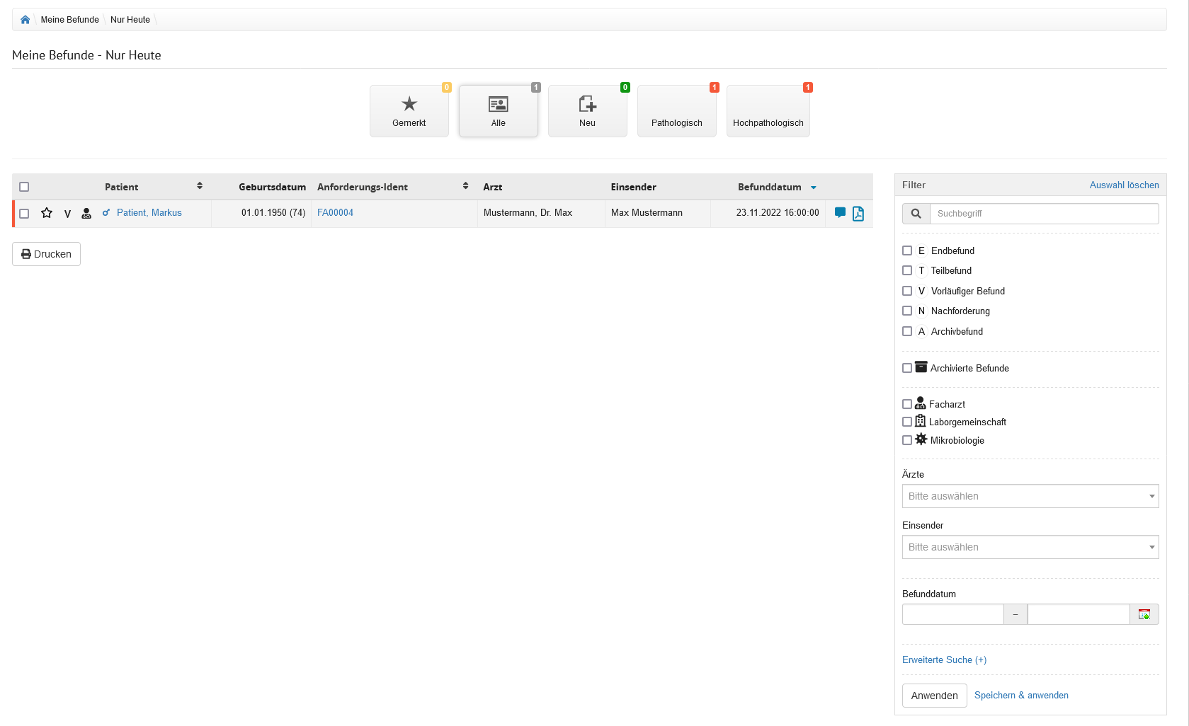 - "Nur Heute" - es werden alle heutigen Befunde angezeigt